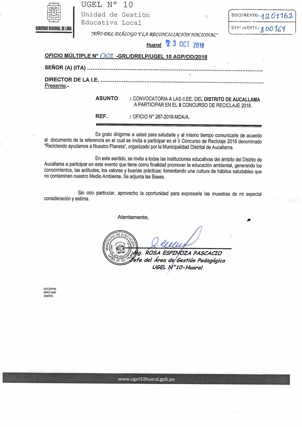 23 Oct,2018 Comunicados COMMENTS Convocatoria a las II.EE del Distrito de Aucallama a participar en el II Concurso de Reciclaje 2018. ver bases y ficha de inscripción