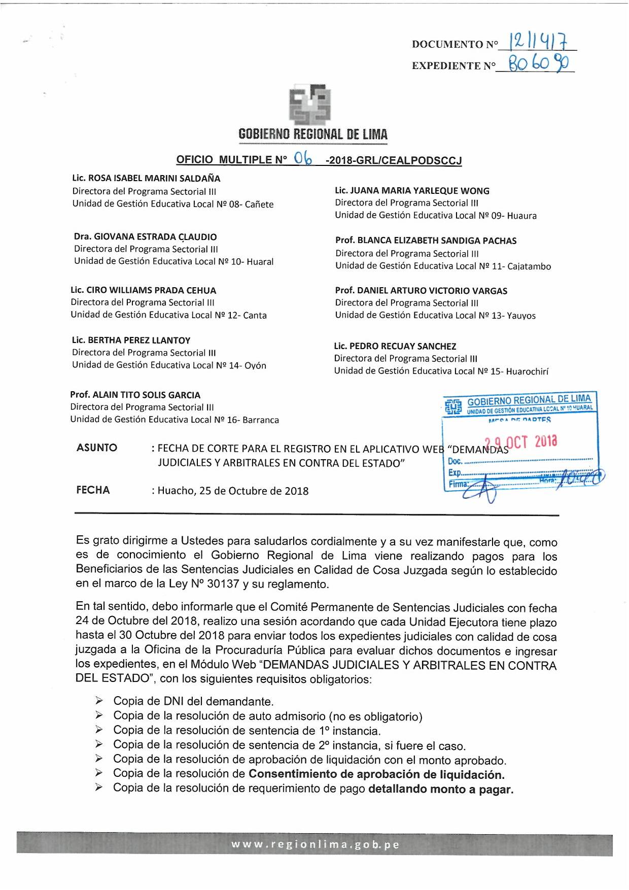 29 Oct,2018 Comunicados COMMENTS FECHA DE CORTE PARA EL REGISTRO EN EL APLICATIVO WEB "DEMANDAS JUDICIALES Y ARBITRALES EN CONTRA DEL ESTADO"
