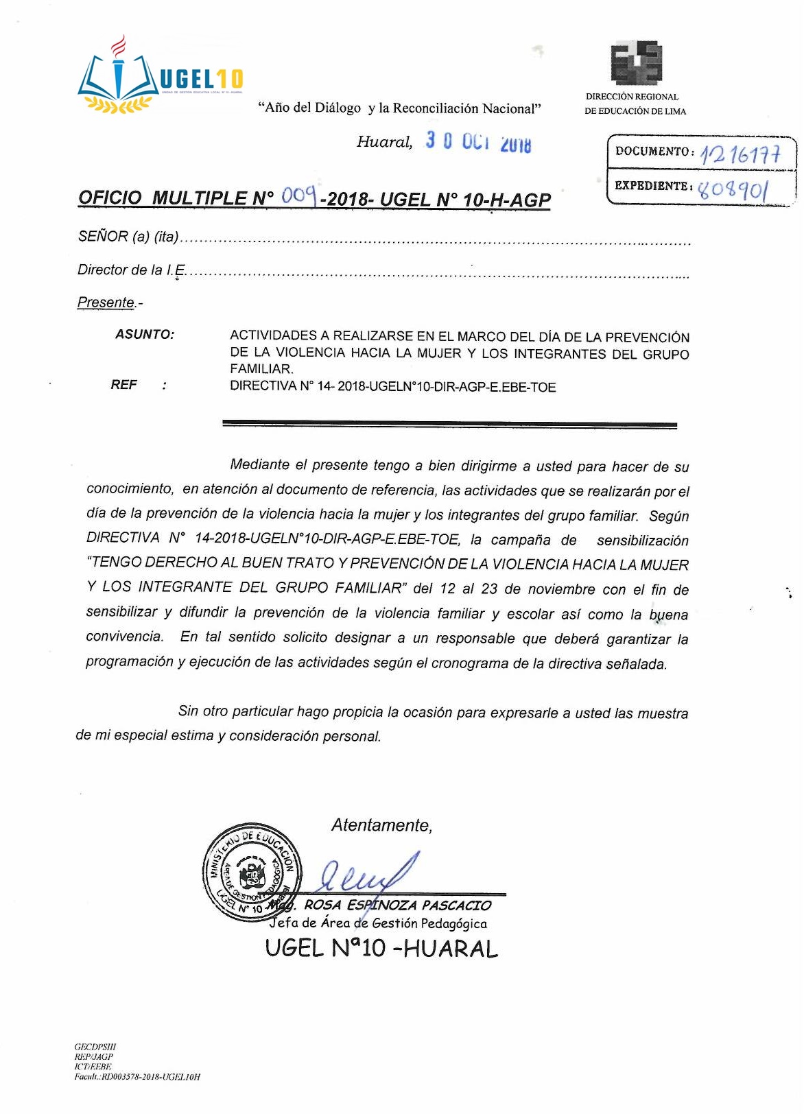 30 Oct,2018 Comunicados COMMENTS Actividades a Realizar en el Marco del Día de la Prevención de la Violencia hacia la Mujer y los Integrantes del Grupo Familiar. ver directiva y anexo