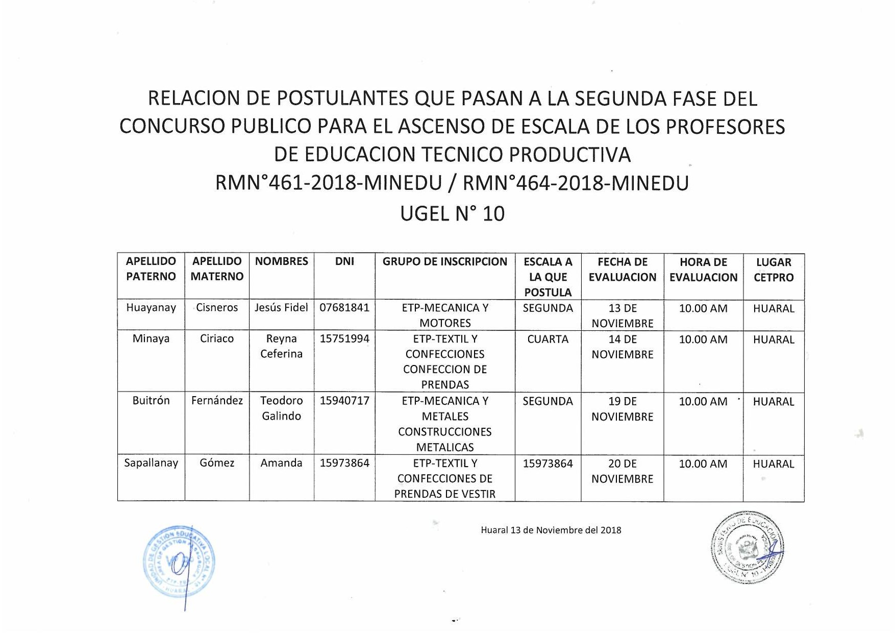 13 Nov,2018 Comunicados COMMENTS Relación de Postulantes que Pasan a la Segunda Fase del Concurso Público para el Ascenso de Escala de los Profesores de Educ. Tec. Productiva.