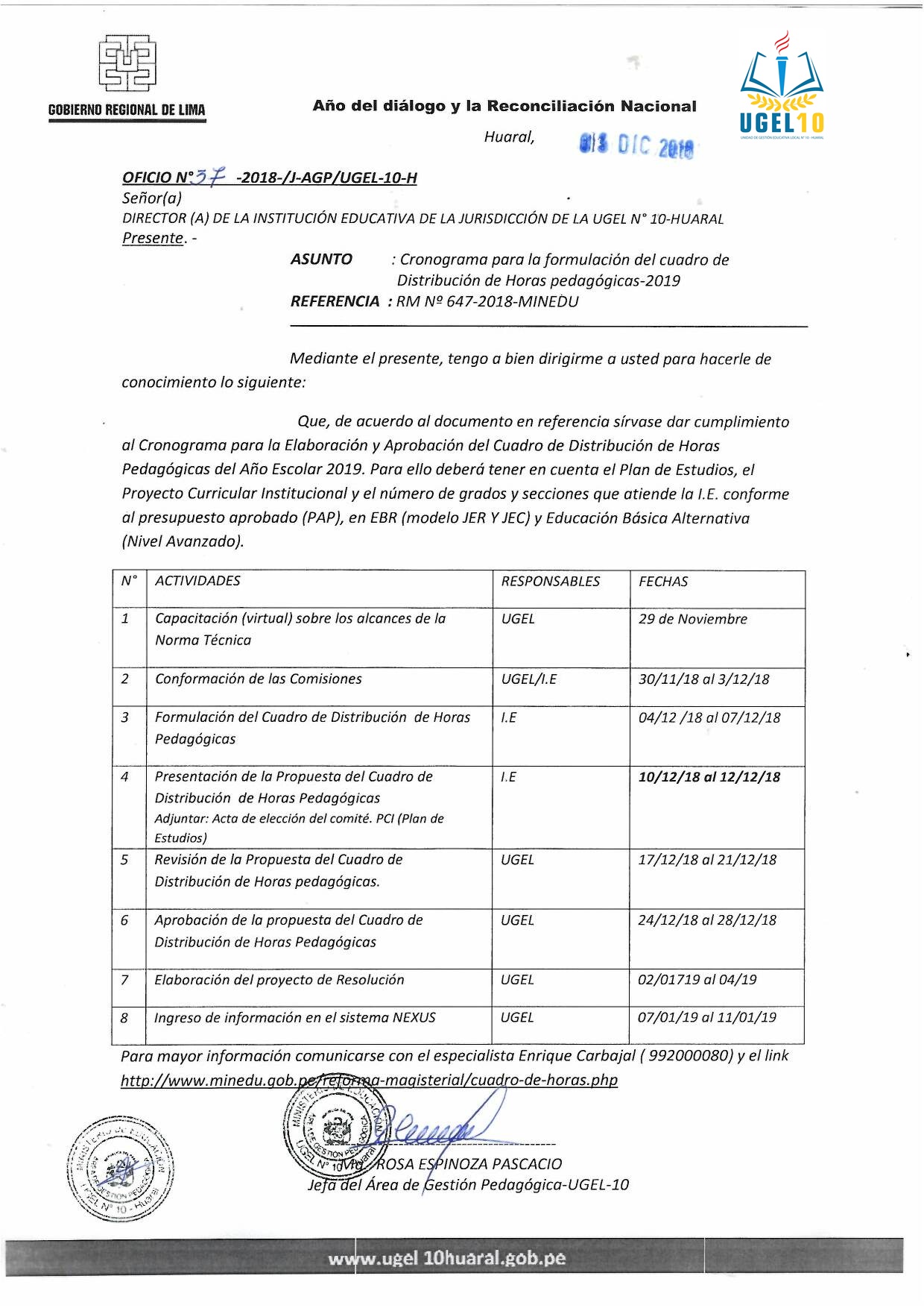 04 Dic,2018 Comunicados COMMENTS Cronograma para la Formulación del Cuadro de Distribución de Horas Pedagógicas 2019.