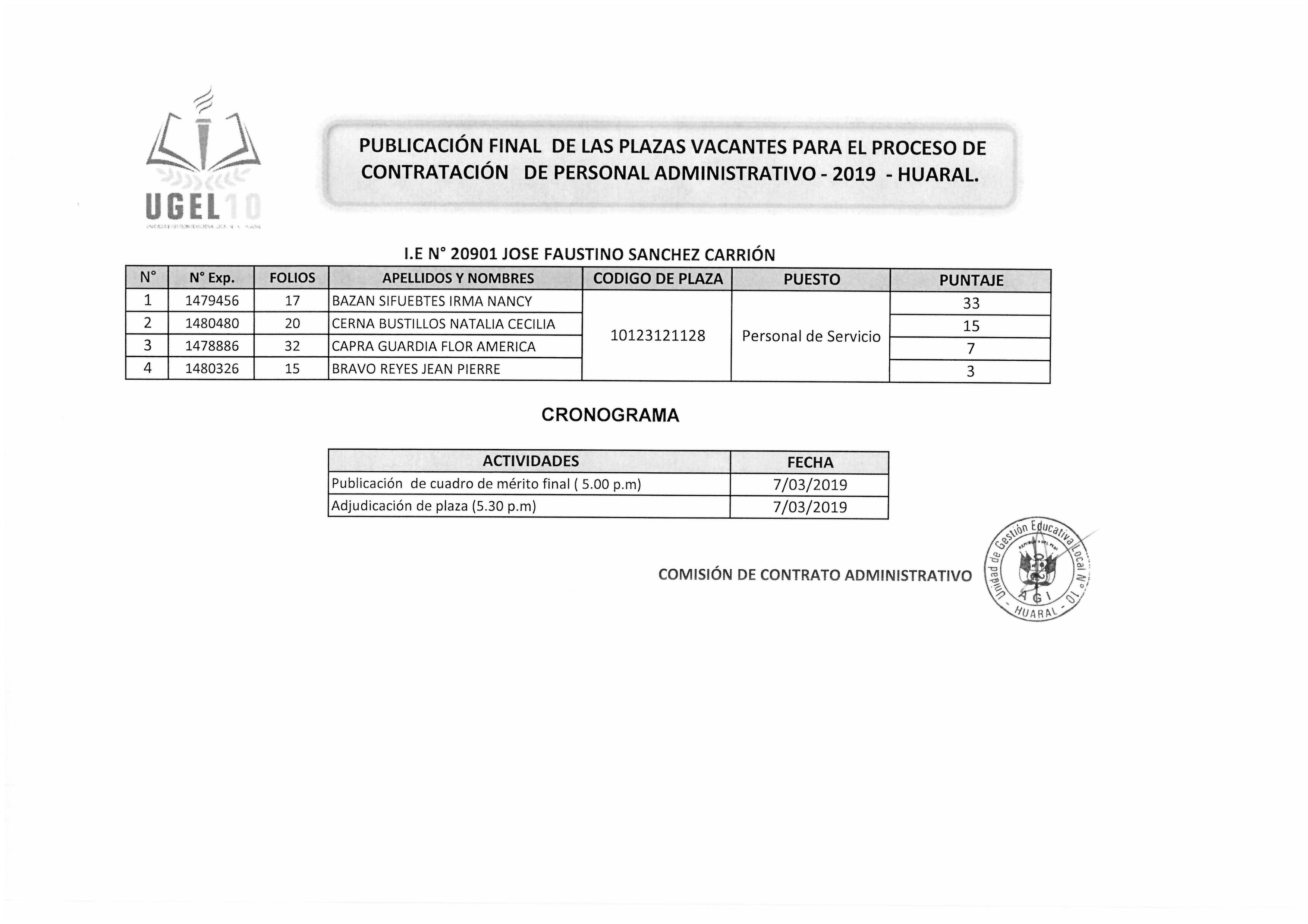 07 Mar,2019 Convocatorias COMMENTS PUBLICACIÓN FINAL DE LAS PLAZAS VACANTES PARA EL PROCESO DE CONTRATACIÓN DE PERSONAL ADMINISTRATIVO - 2019 -HUARAL ÓN