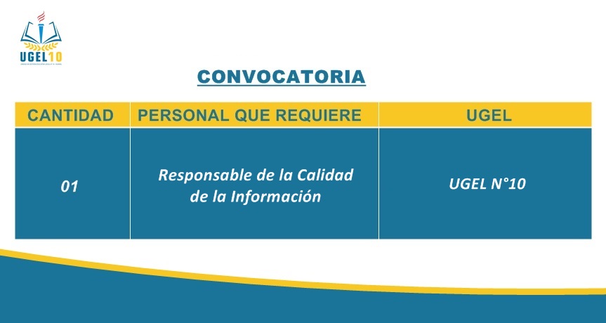 11 Mar,2019 Convocatorias COMMENTS CAS 08 - Convocatoria Responsable de la Calidad de la Información. ver convocatoria y anexos