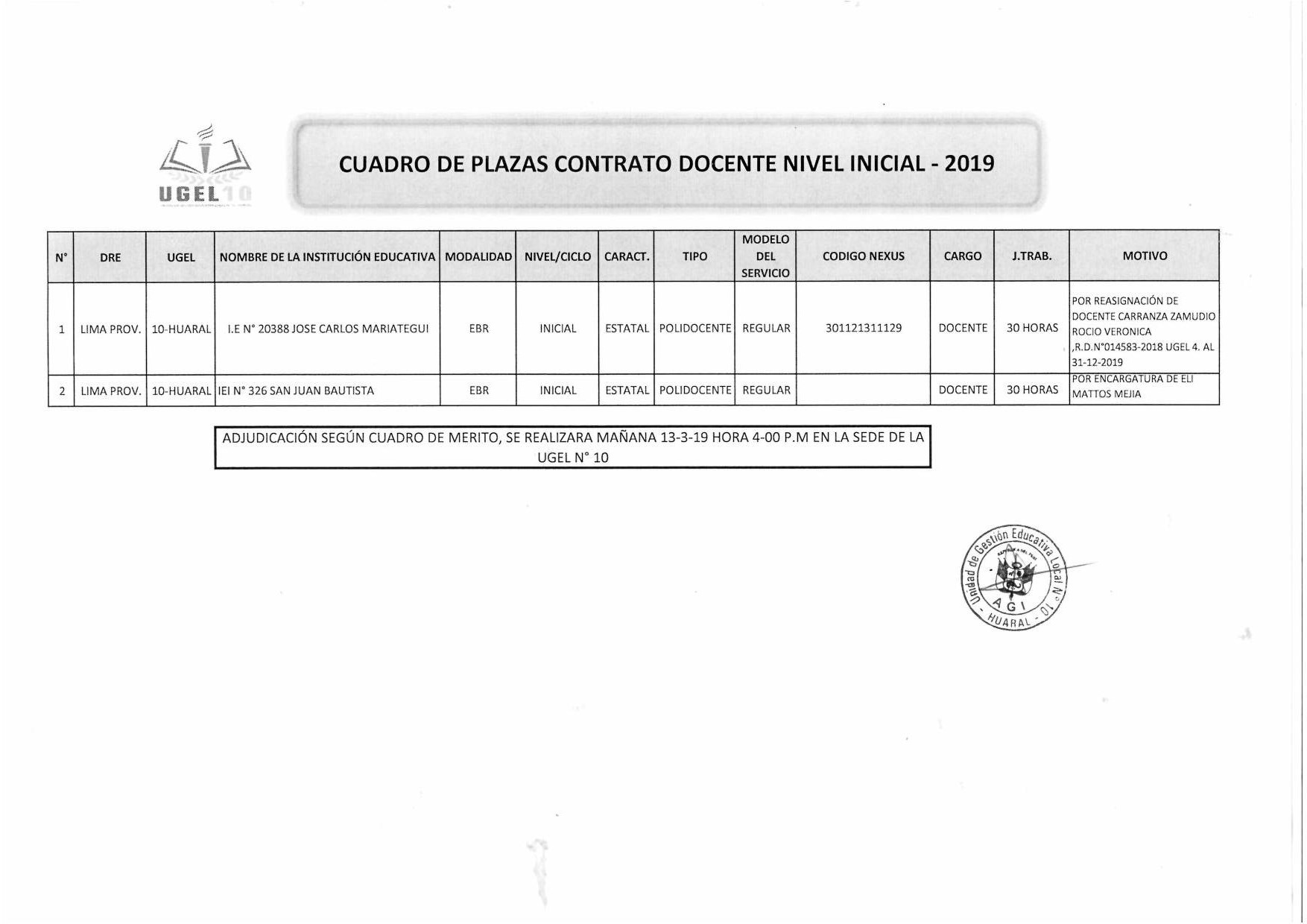 12 Mar,2019 Convocatorias COMMENTS Plazas de Contrato Docente Según Cuadro de Méritos [Inicial - Secundaria]