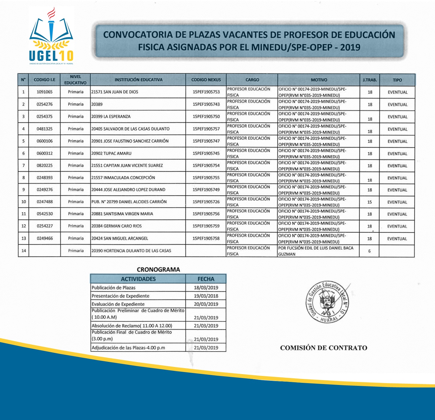 18 Mar,2019 Convocatorias COMMENTS Plazas Vacantes de Profesor de Educación Física Asignadas por el MINEDU