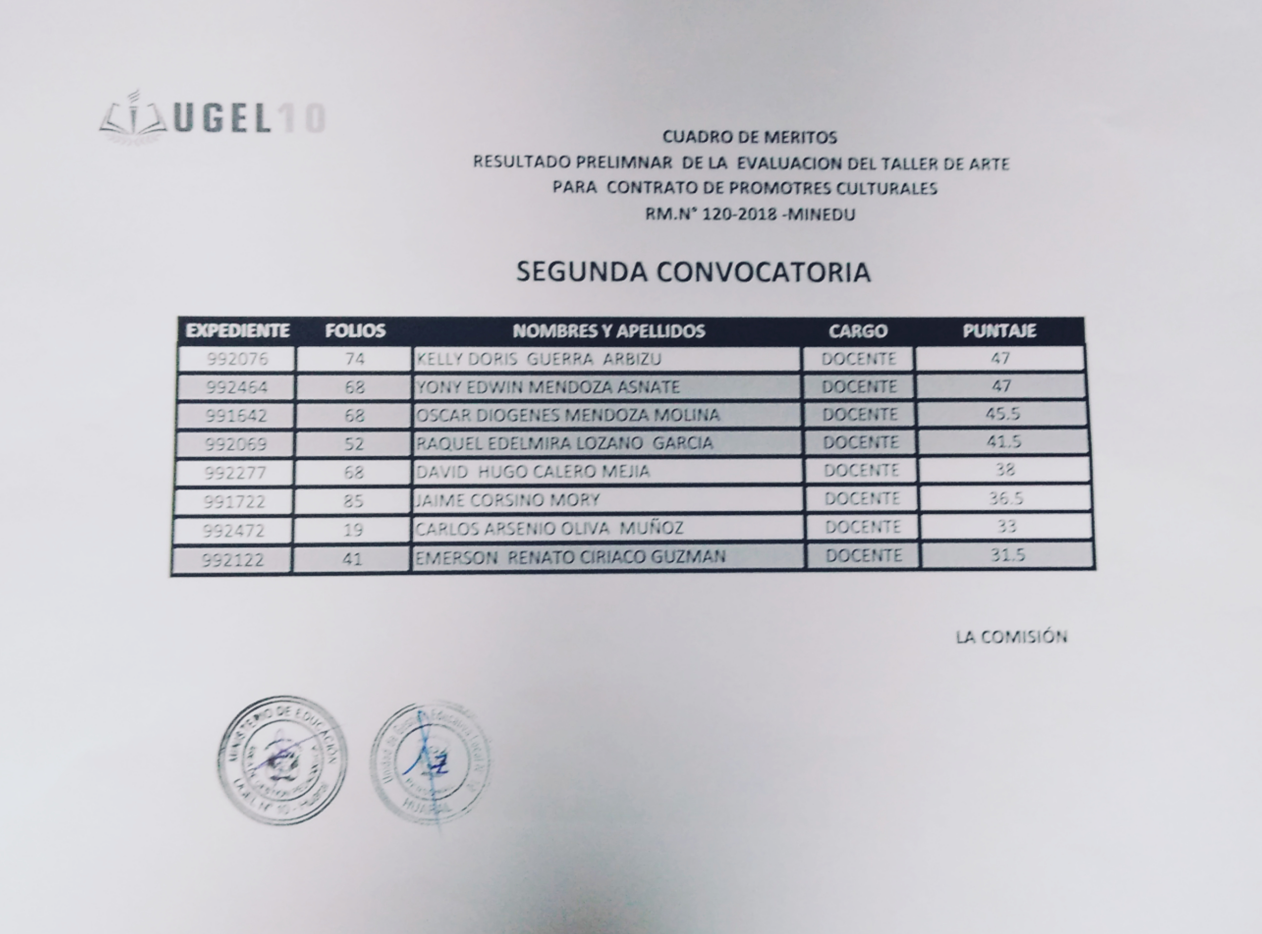 22 Mar,2019 Convocatorias COMMENTS Resultado Preliminar de la Evaluación del Taller de Arte para Contrato de Promotores Culturales