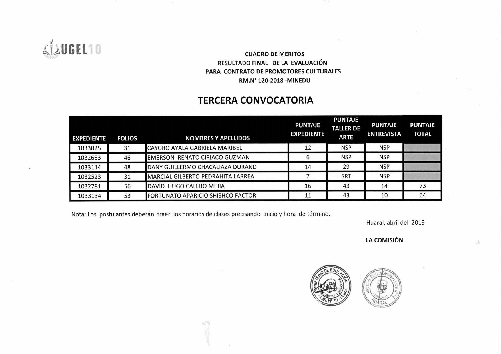 17 Abr,2019 Convocatorias COMMENTS Resultado Final de la Evaluación para Contrato de Promotores Culturales