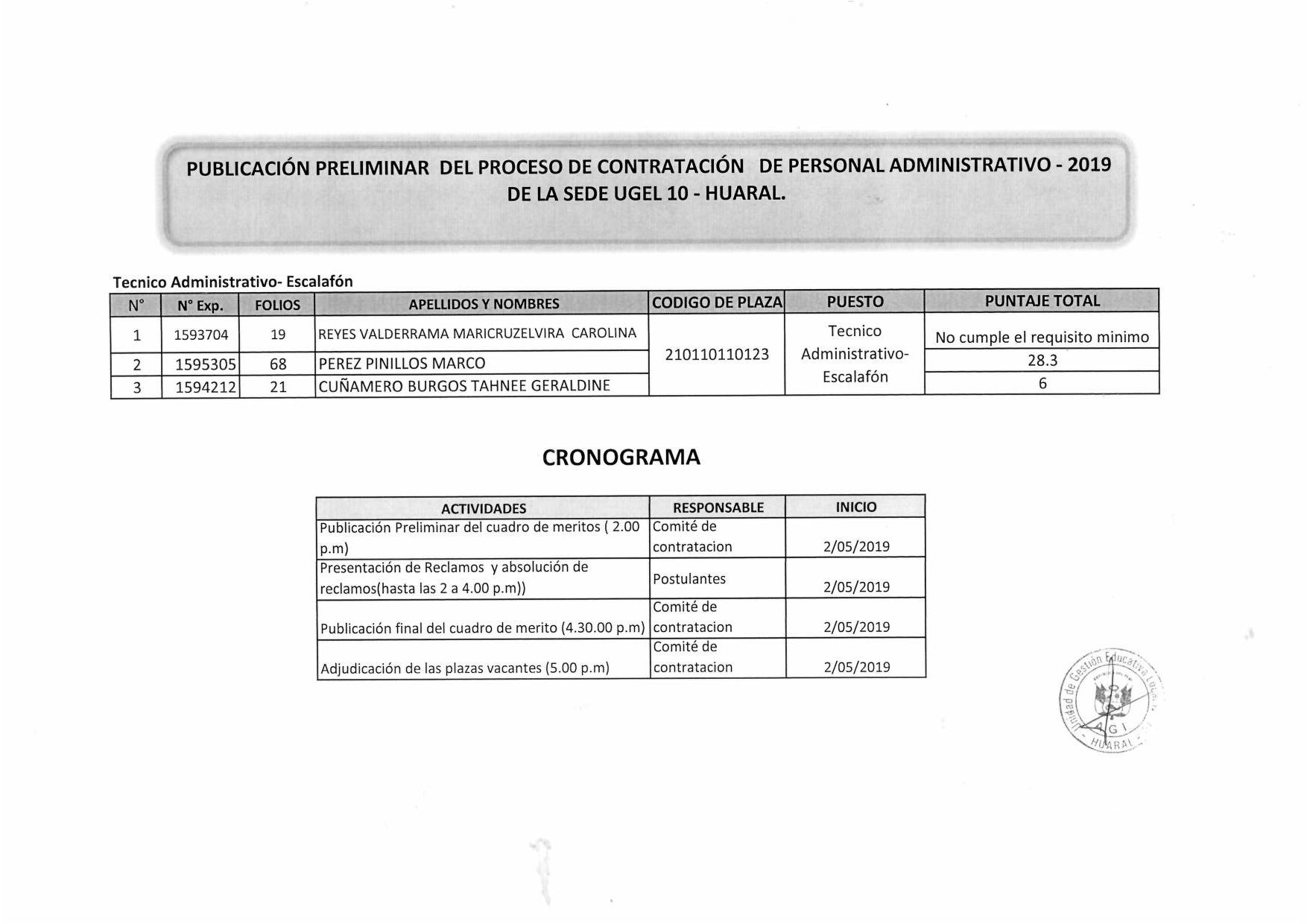 02 May,2019 Convocatorias COMMENTS Publicación Preliminar del Proceso de Contratación de Personal Administrativo de la Sede Ugel 10