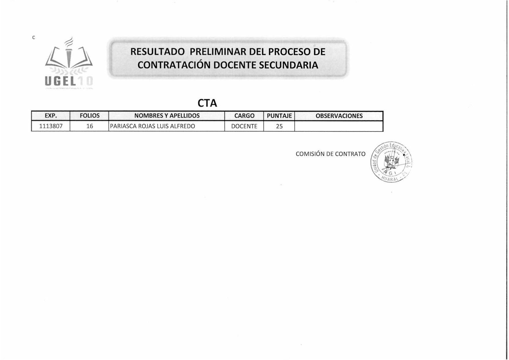 13 Jun,2019 Convocatorias COMMENTS Resultado Preliminar del Proceso de contratación Docente Secundaria [Educ. Física - CTA]