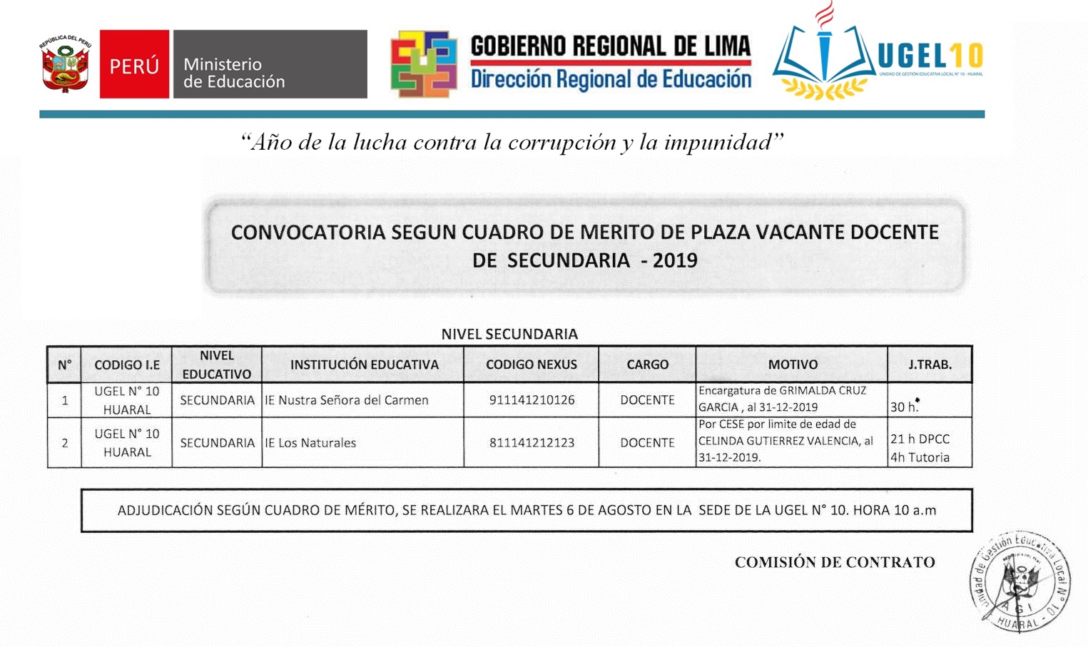05 Ago,2019 Convocatorias COMMENTS Convocatoria Según Cuadro de Mérito de Plaza Vacante Docente de Secundaria.