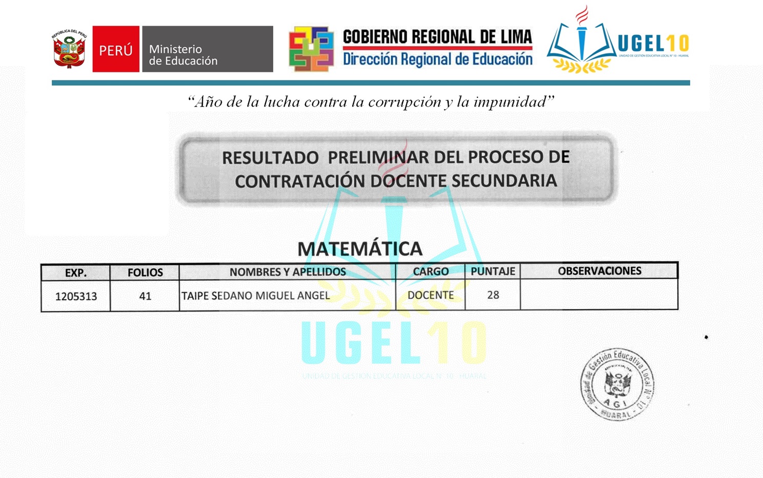 23 Ago,2019 Convocatorias COMMENTS Resultado Preliminar del Proceso de Contratación Docente Secundaria - Matemática.