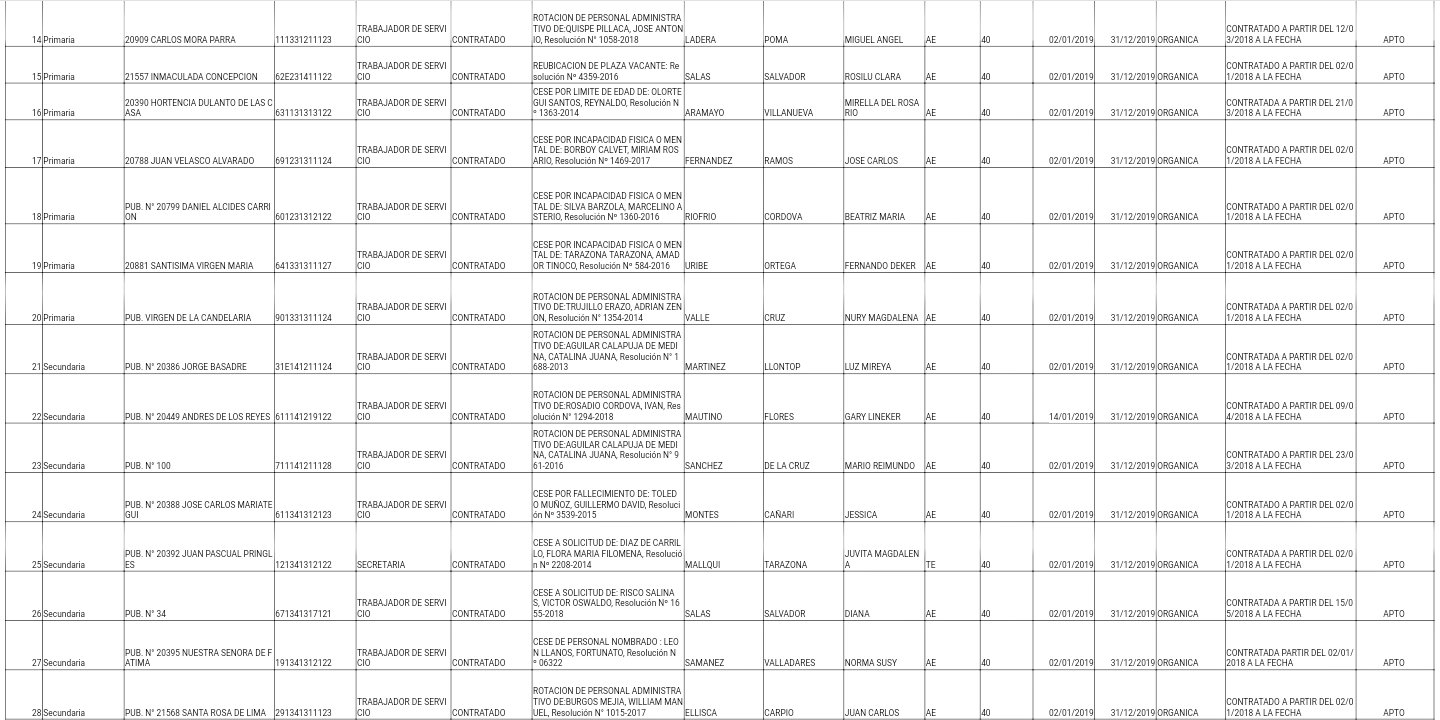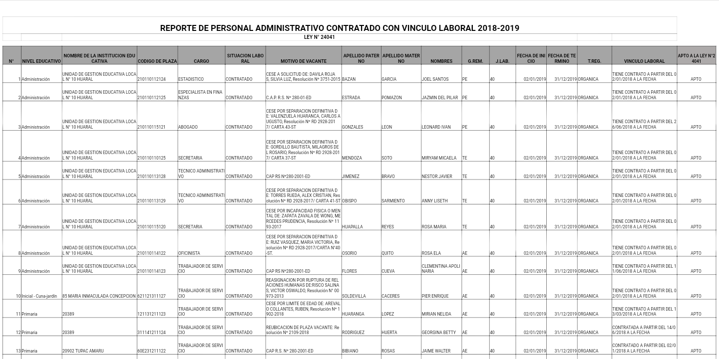 11 Dic,2019 Convocatorias COMMENTS Reporte de Personal Administrativo Contratado con Vínculo Laboral 2018-2019