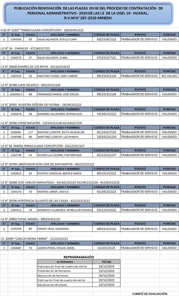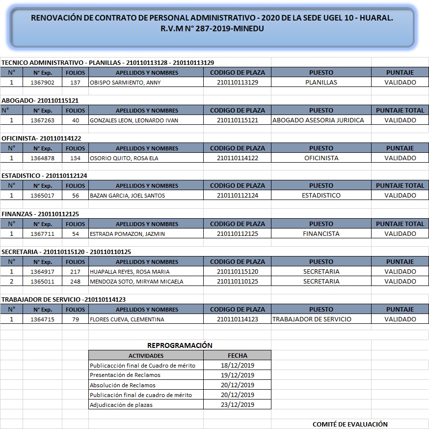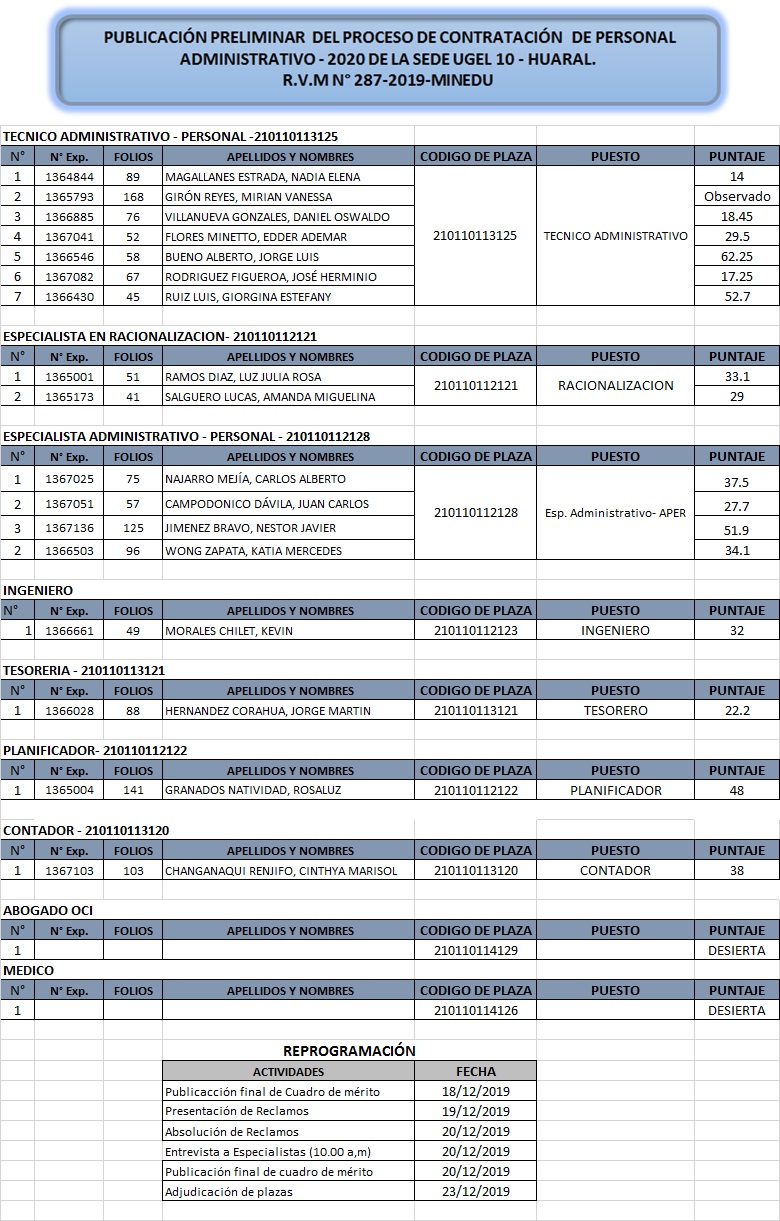 18 Dic,2019 Convocatorias COMMENTS Evaluación Preliminar del Proceso de Contratación de Personal Administrativo - 2020.