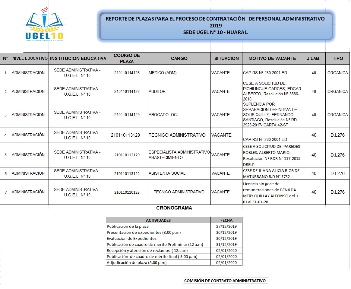 27 Dic,2019 Convocatorias COMMENTS Reporte de Plazas para el Proceso de Contratación de Personal Administrativo.