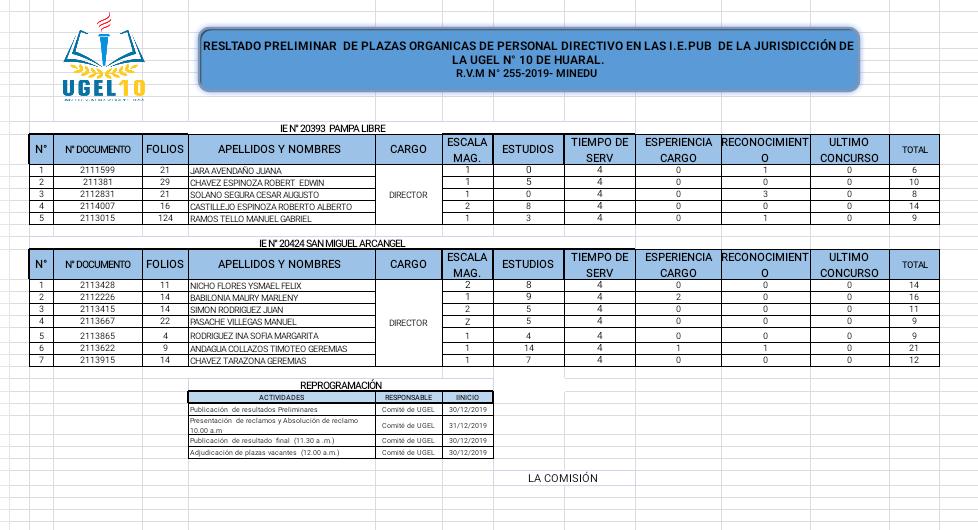 30 Dic,2019 Convocatorias COMMENTS Resultado Preliminar de Plazas Orgánicas de Personal Directivo en I.E