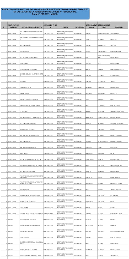 13 Ene,2020 Convocatorias COMMENTS Reporte de Docentes con Encargatura por Funciones como Personal Directivo en las II.EE Pub.