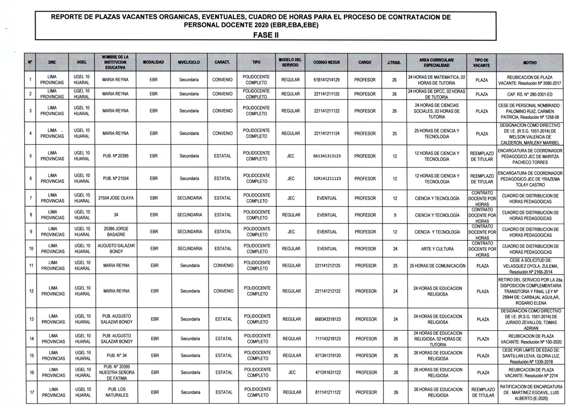 29 Ene,2020 Convocatorias COMMENTS Cronograma y Plazas Vacantes para el Proceso de Contratación Docente 2020 - Fase II