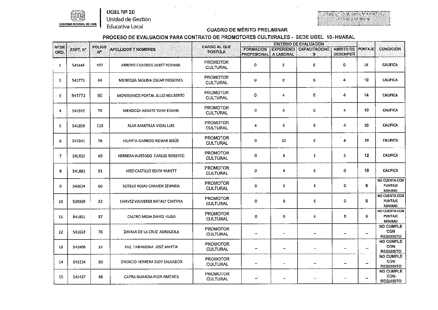 06 Abr,2018 Convocatorias COMMENTS Convocatoria: CUADRO PRELIMINAR 10 promotores culturales "Expresarte"
