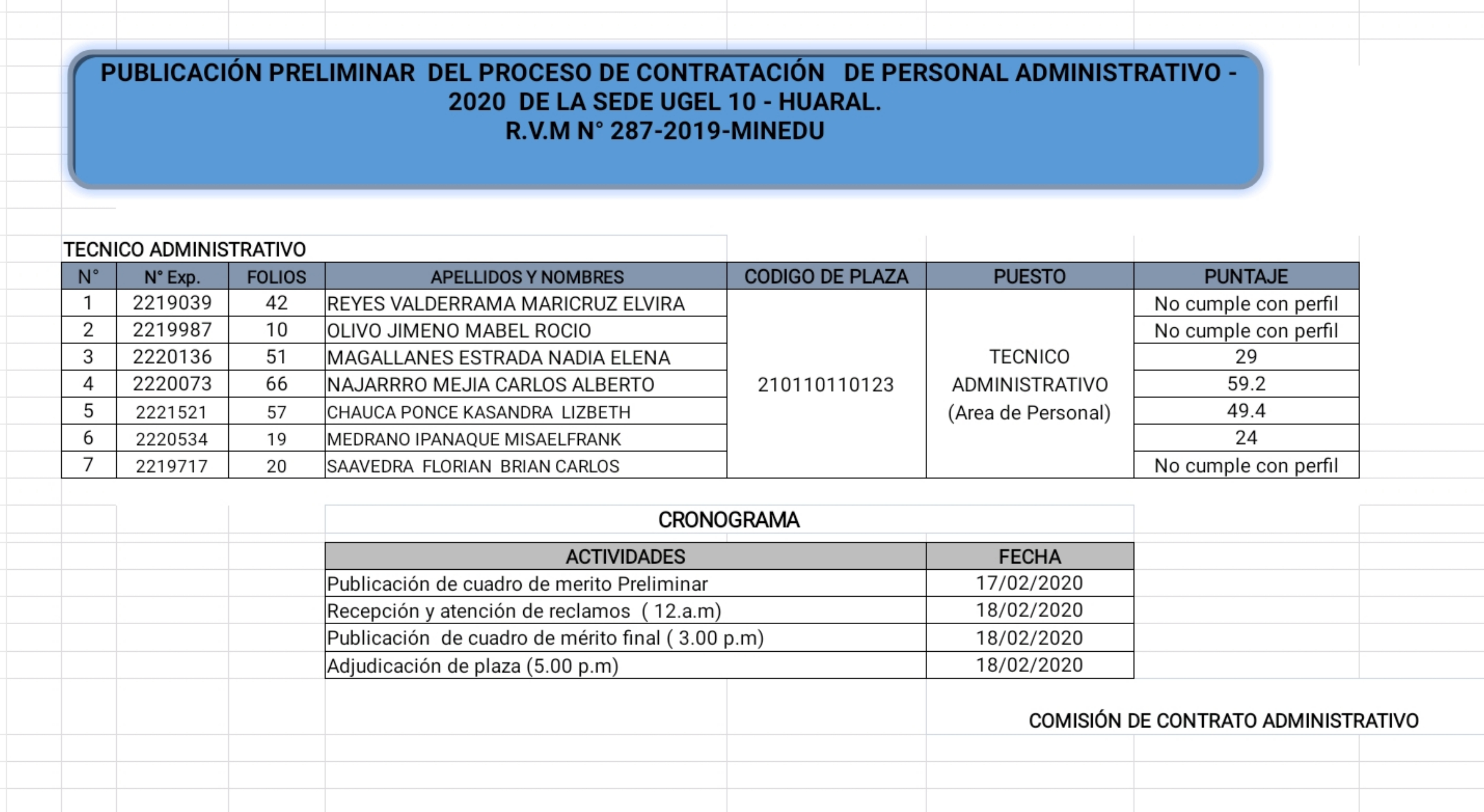 17 Feb,2020 Convocatorias COMMENTS Publicación Preliminar del Proceso de Contratación de Personal administrativo 2020