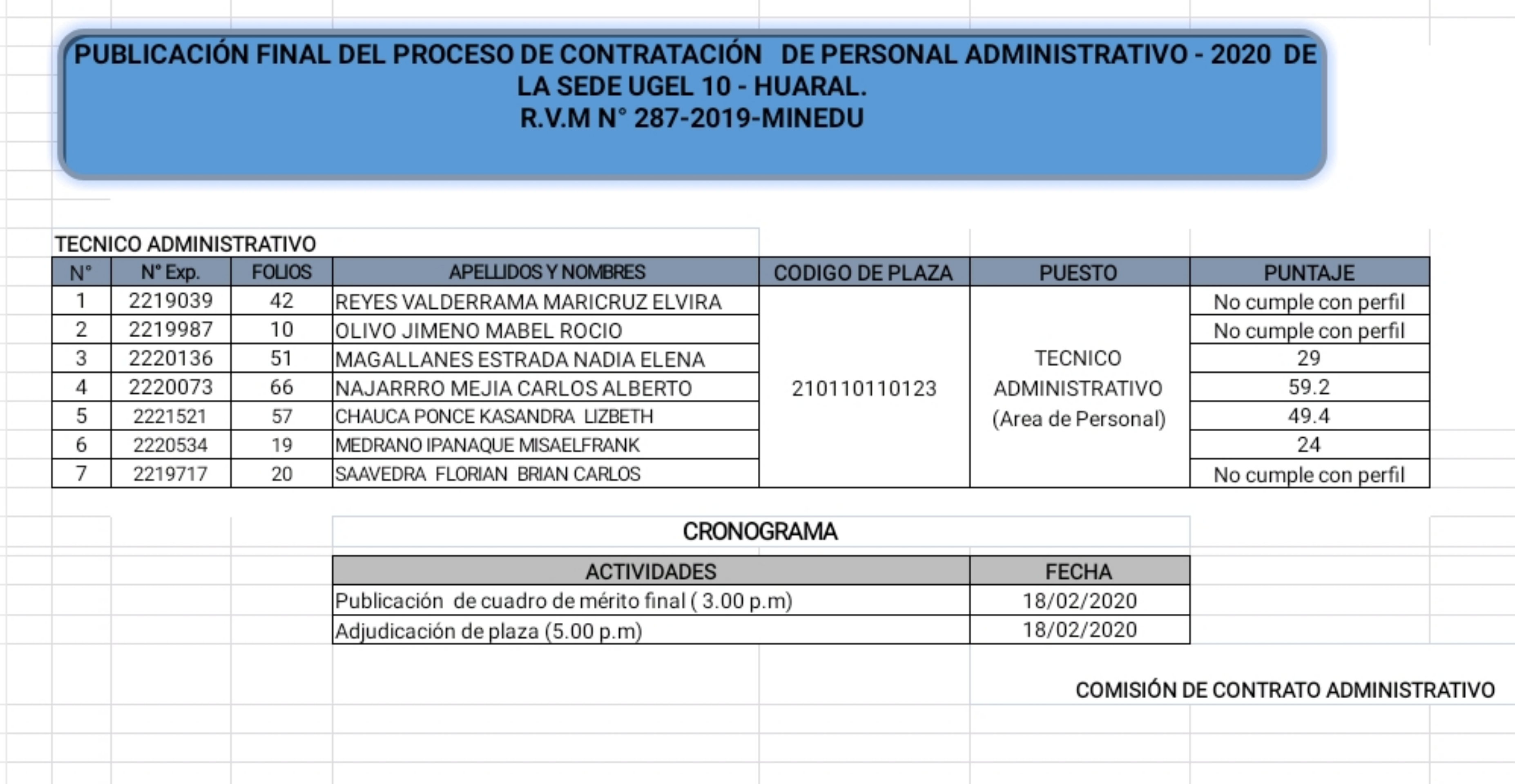 18 Feb,2020 Convocatorias COMMENTS Publicación Final del Proceso de Contratación de Personal Administrativo 2020