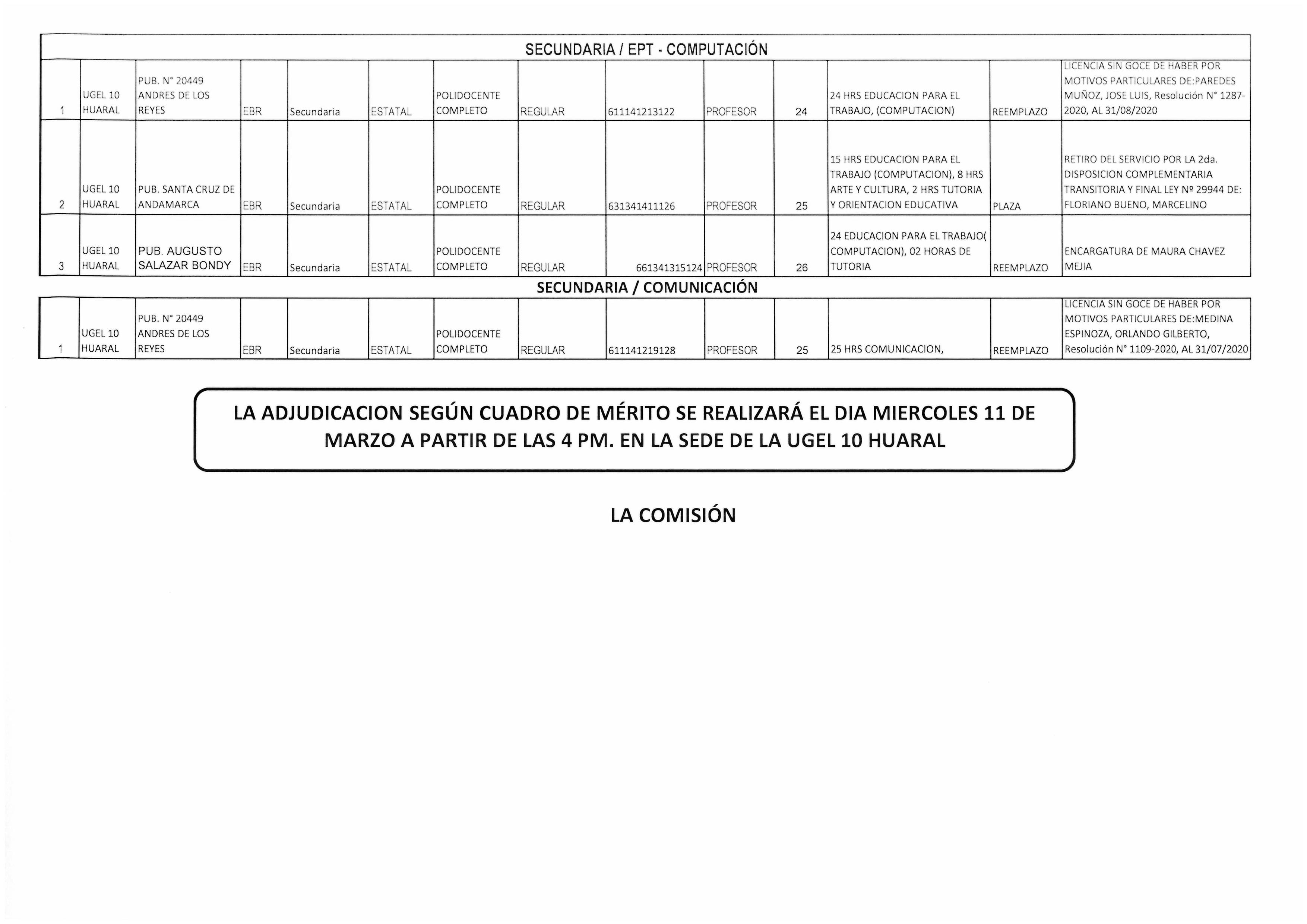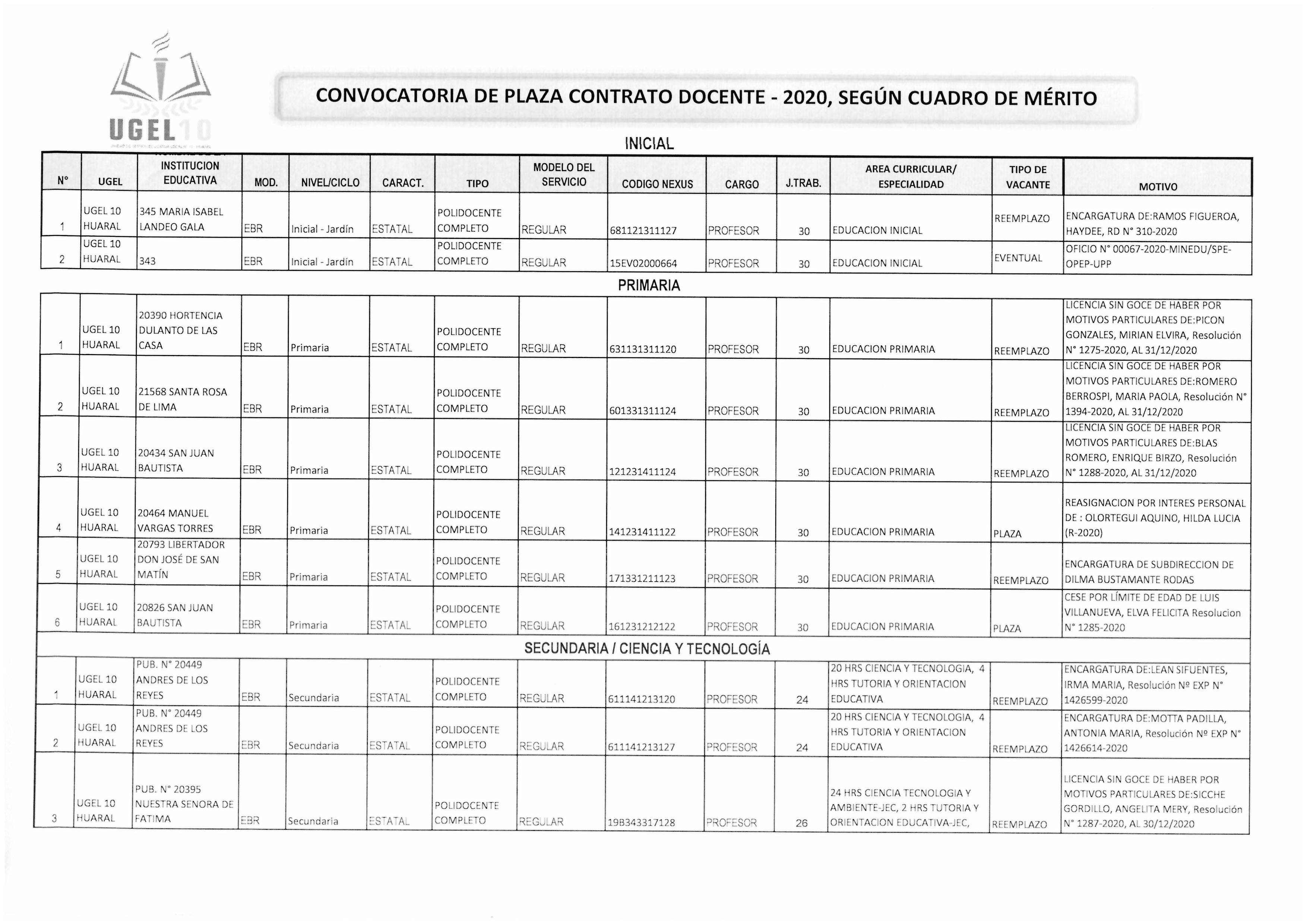 10 Mar,2020 Convocatorias COMMENTS CONVOCATORIA DE PLAZA CONTRATO DOCENTE - 2020 , SEGÚN CUADRO DE MERITO