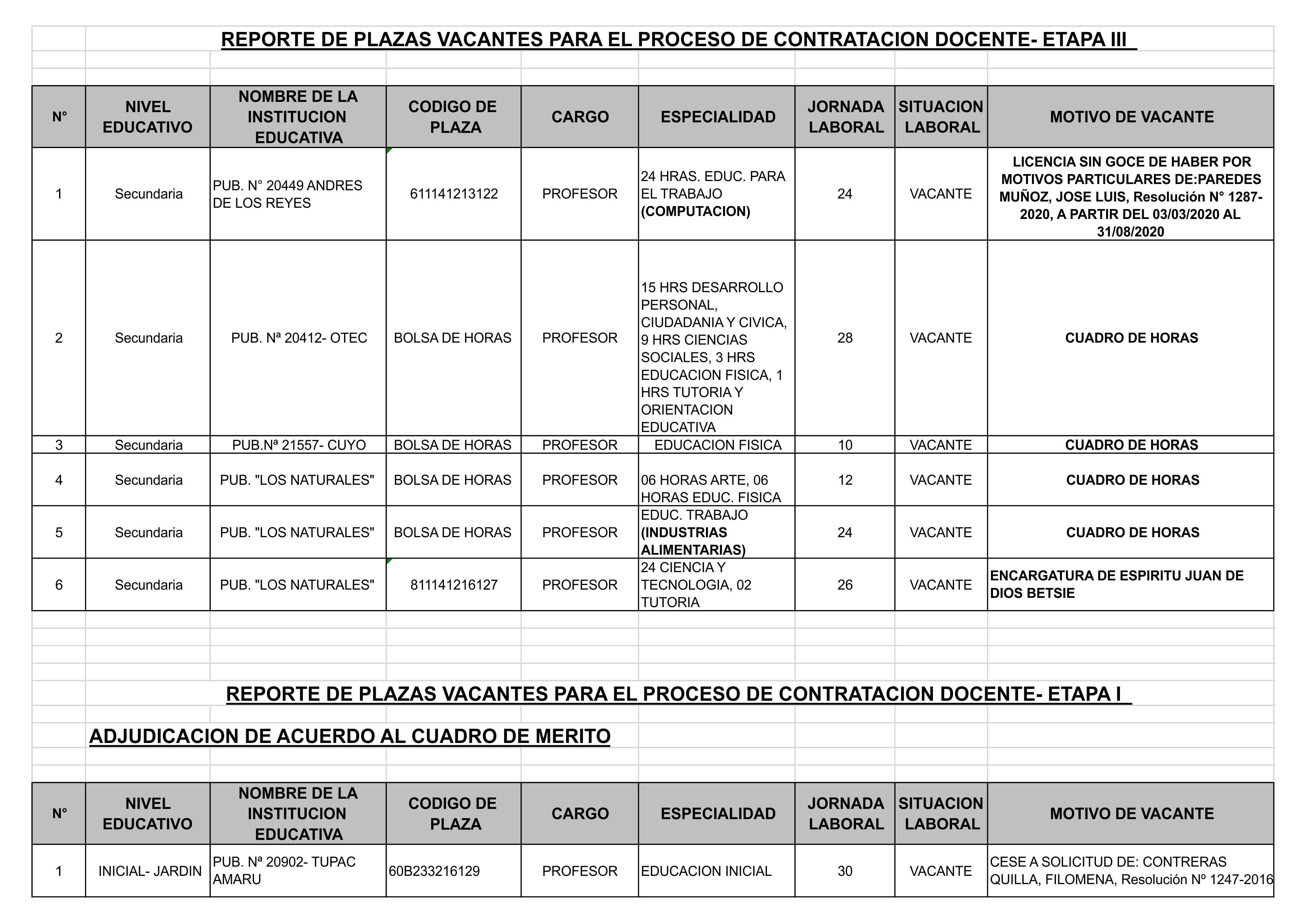 18 May,2020 Convocatorias COMMENTS REPORTE DE PLAZAS VACANTES PARA EL PROCESO DE CONTRATACIÓN DOCENTE Nota: Publicado el 8 de mayo en la sección de comunicados. DESCARGAR REPORTE DE PLAZAS VACANTES