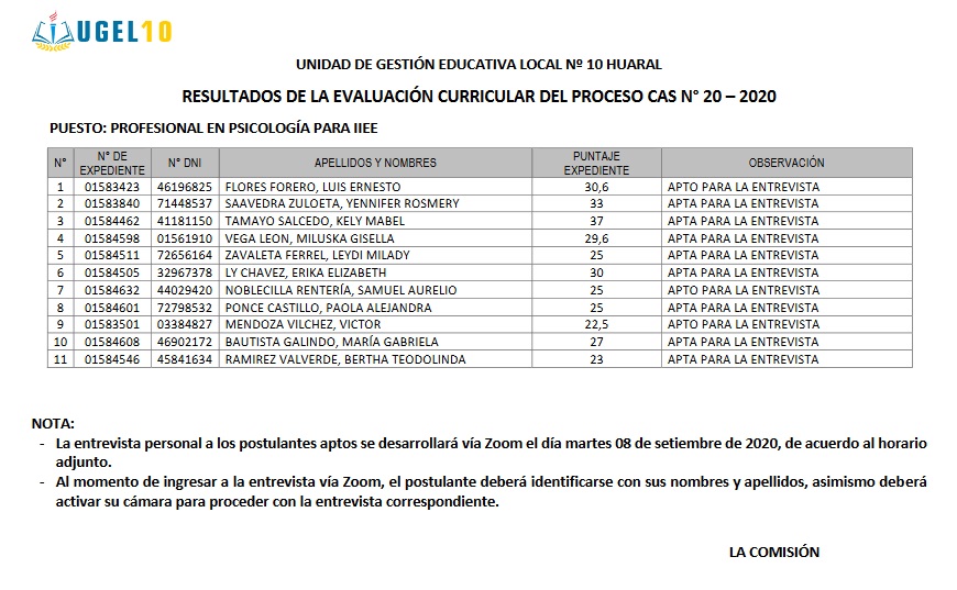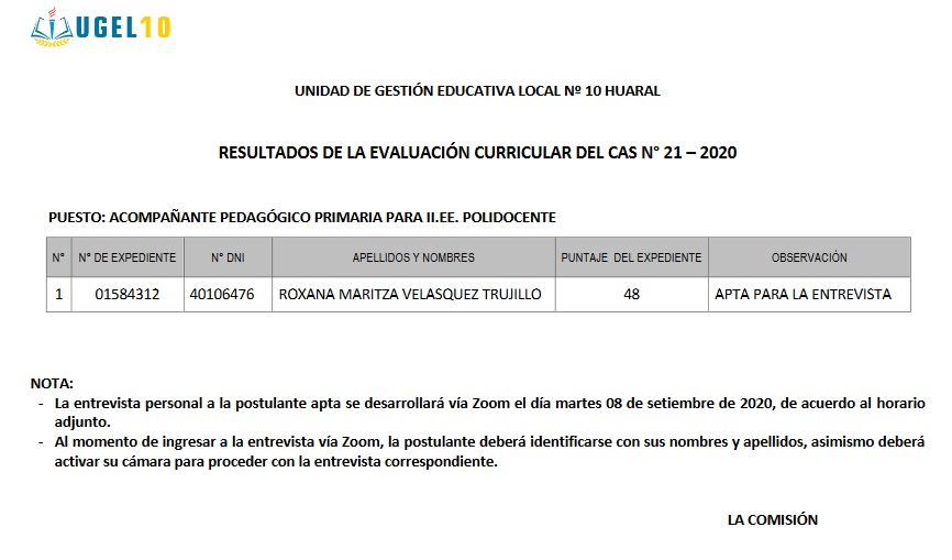 07 Sep,2020 Convocatorias COMMENTS CAS 20 y 21 - Resultados de la Evaluación Curricular. https://us02web.zoom.us/j/88066176803?pwd=bXYzUWxOcGc2c2J0RWJsZXlicERjZz09#success