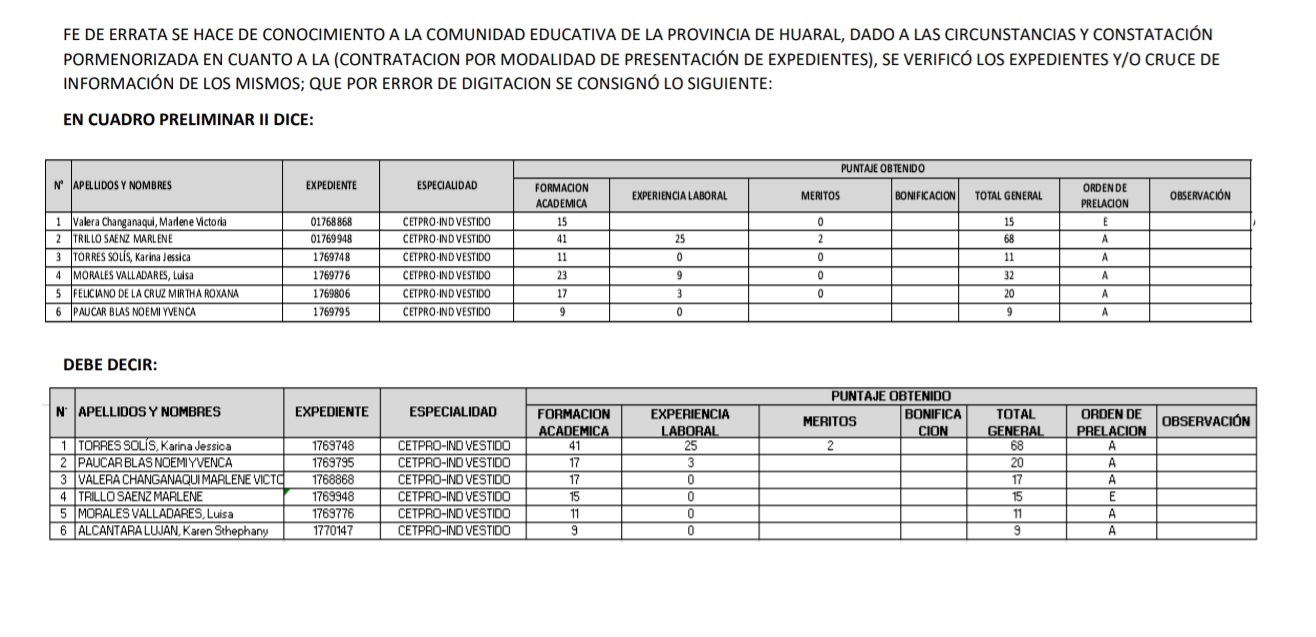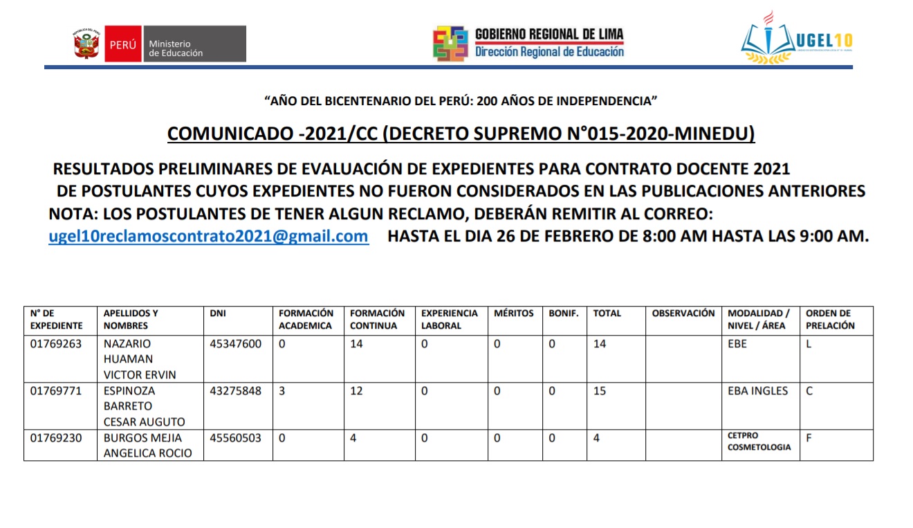 26 Feb,2021 Convocatorias COMMENTS FE DE ERRATAS : RESULTADOS PRELIMINARES EVALUACIÓN EXPEDIENTES CONTRATO DOCENTE 2021