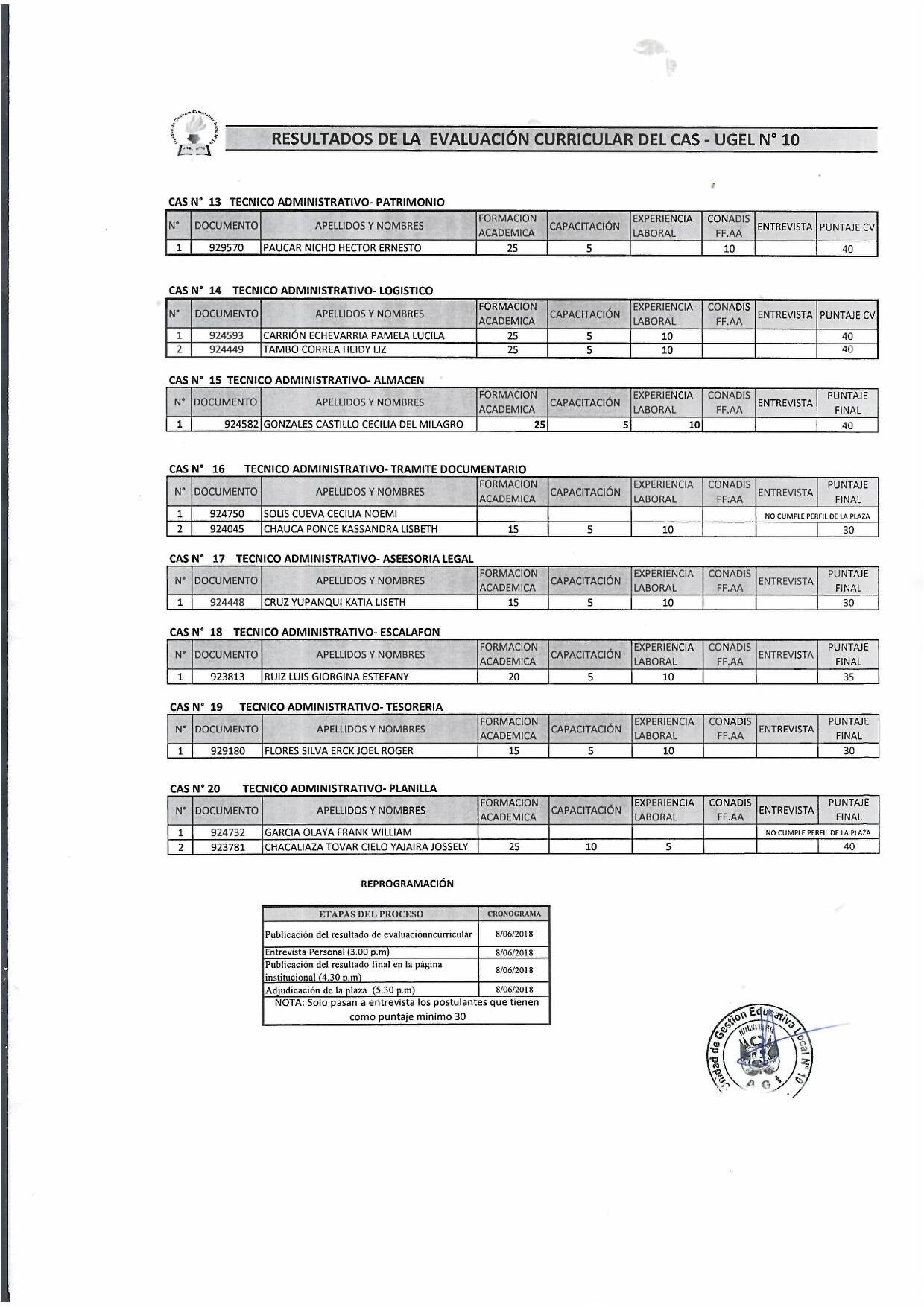 08 Jun,2018 Convocatorias COMMENTS Resultado de la Evaluación Curricular del CAS N° 13, 14, 15, 16, 17, 18, 19 y 20 - UGEL N° 10