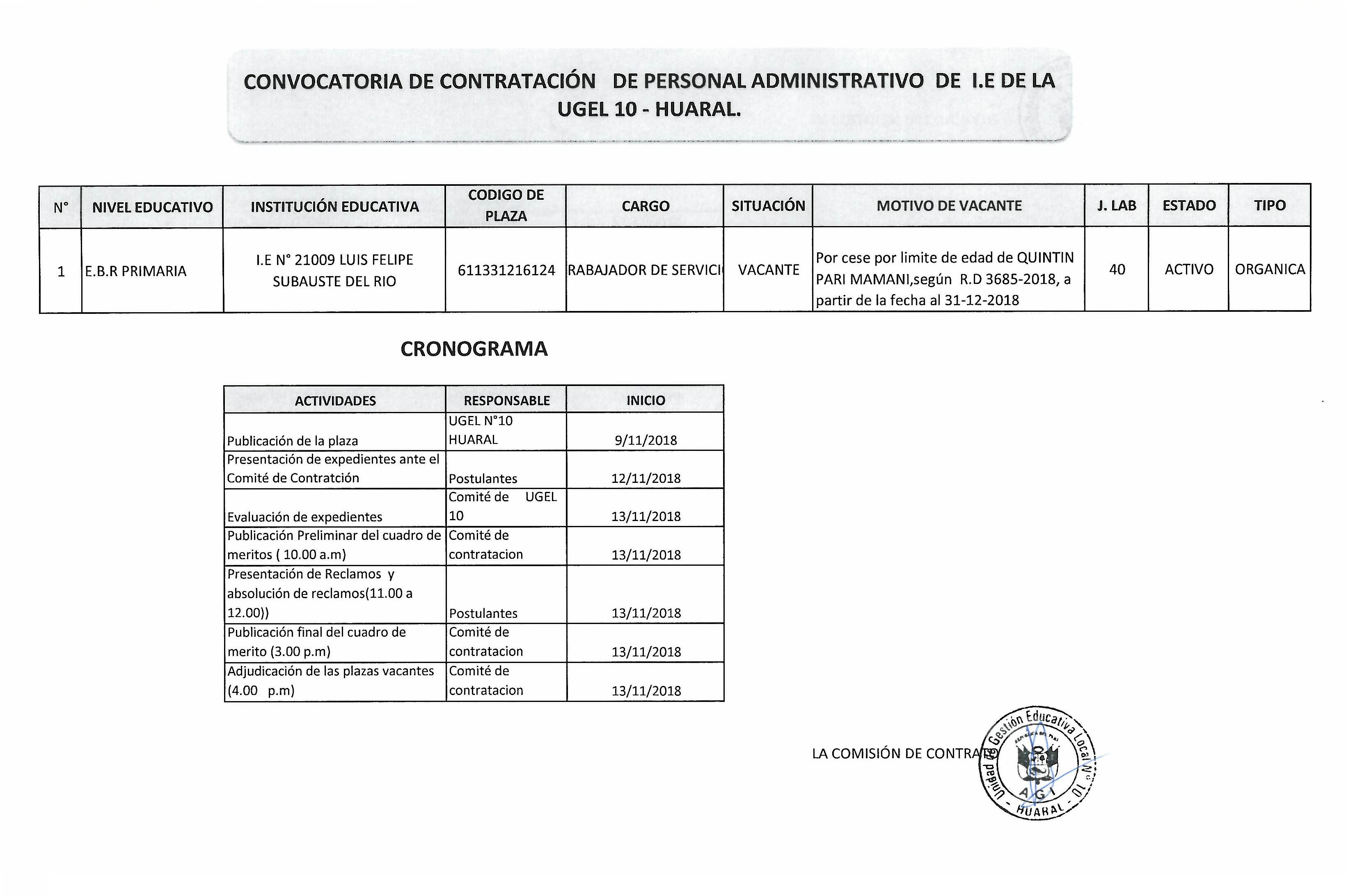 09 Nov,2018 Convocatorias COMMENTS CONVOCATORIA DE CONTRATACIÓN DE PERSONAL ADMINISTRATIVO DE I.E N° 21009