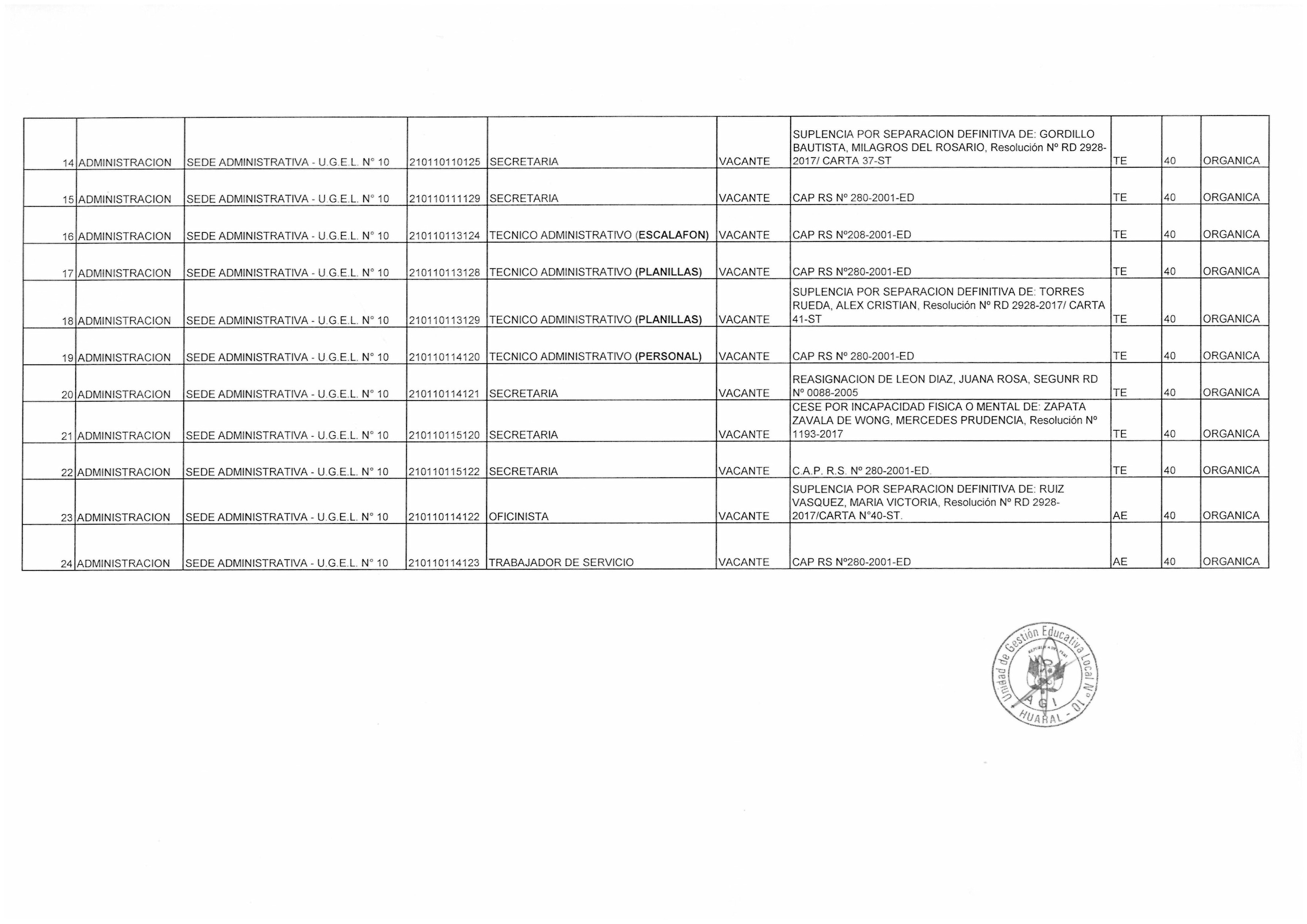 03 Dic,2018 Convocatorias COMMENTS REPORTE DE PLAZAS VACANTES PARA EL PROCESO DE CONTRATACIÓN DE PERSONAL ADMINISTRATIVO EN LA SEDE UGEL 10 DE HUARAL PARA EL AÑO 2019