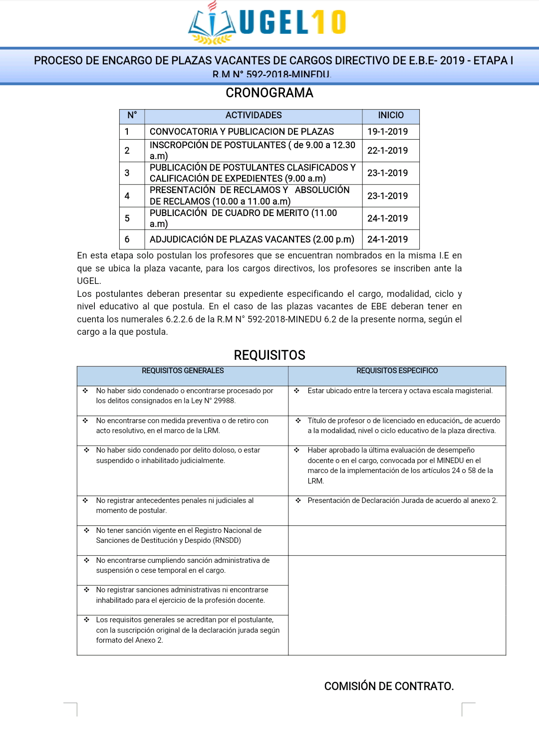20 Ene,2019 Convocatorias COMMENTS Proceso de Encargo de Plazas Vacantes de Cargos de Directivo en EBE 2019
