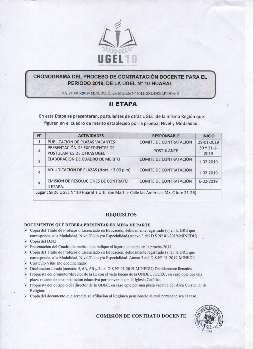 29 Ene,2019 Convocatorias COMMENTS Cronograma del Proceso de Contratación Docente para el Periodo 2019 - II Etapa.