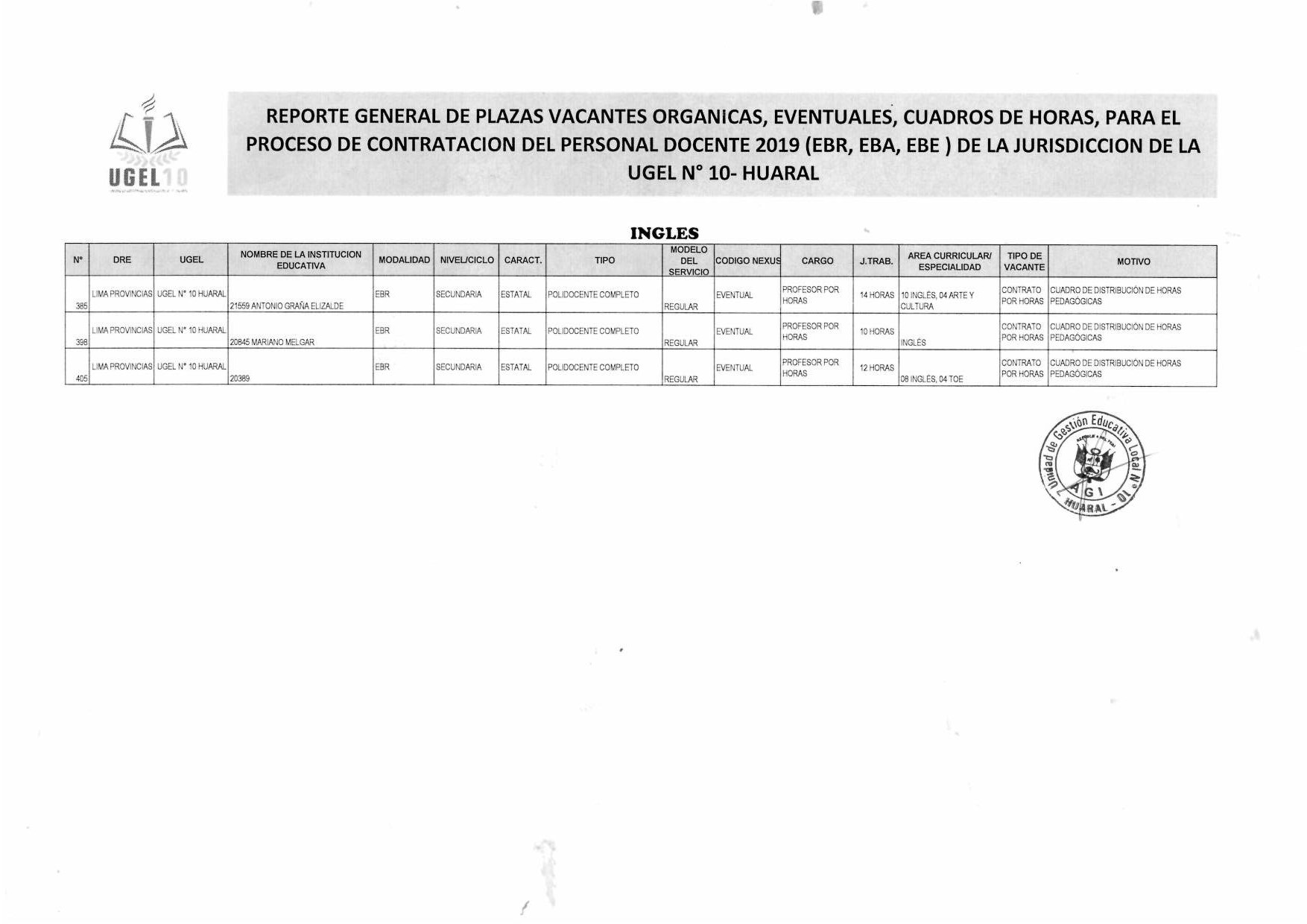 12 Feb,2019 Convocatorias COMMENTS [III Etapa - I Tramo] Cronograma del Proceso de Contratación Docente 2019 y Reporte General de Plazas Vacantes