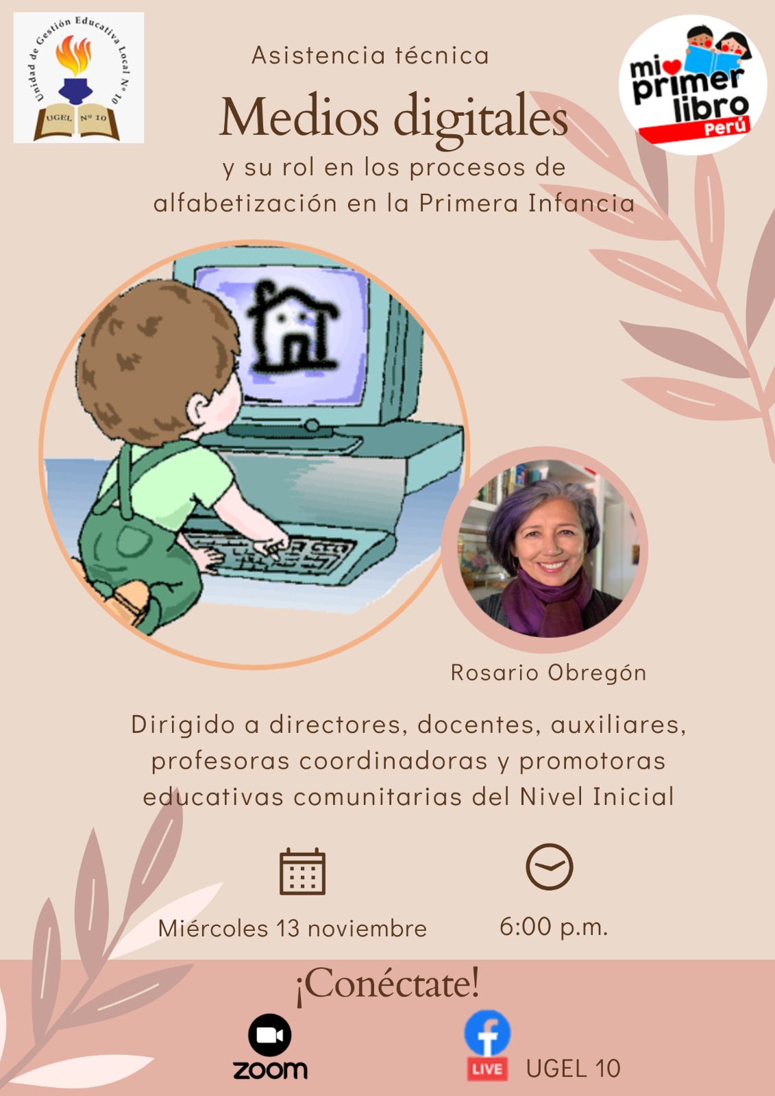 Acompáñanos este miércoles 13 de noviembre a las 6:00 p.m. en una sesión con Rosario Obregón, donde exploraremos el papel de los medios digitales en la alfabetización en la primera infancia.